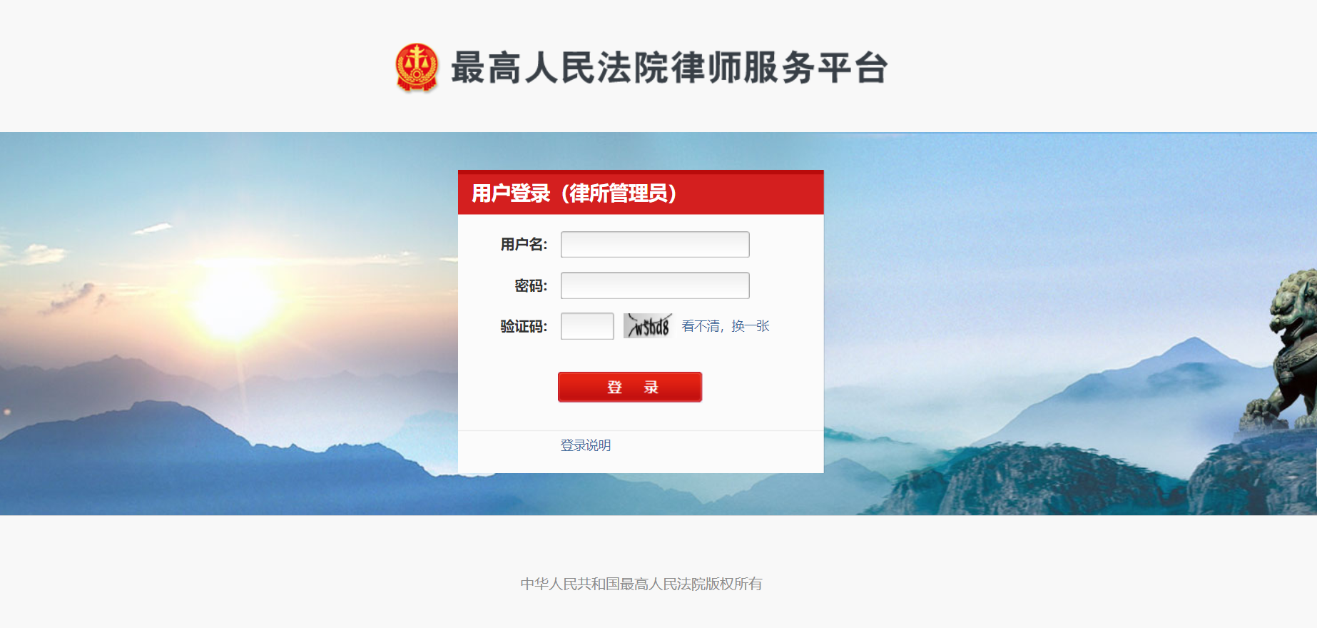 注意:律所管理员维护了律师信息后,律师需要过3-5分钟后才可以在最高人民法院诉讼服务网以律师的身份登录。